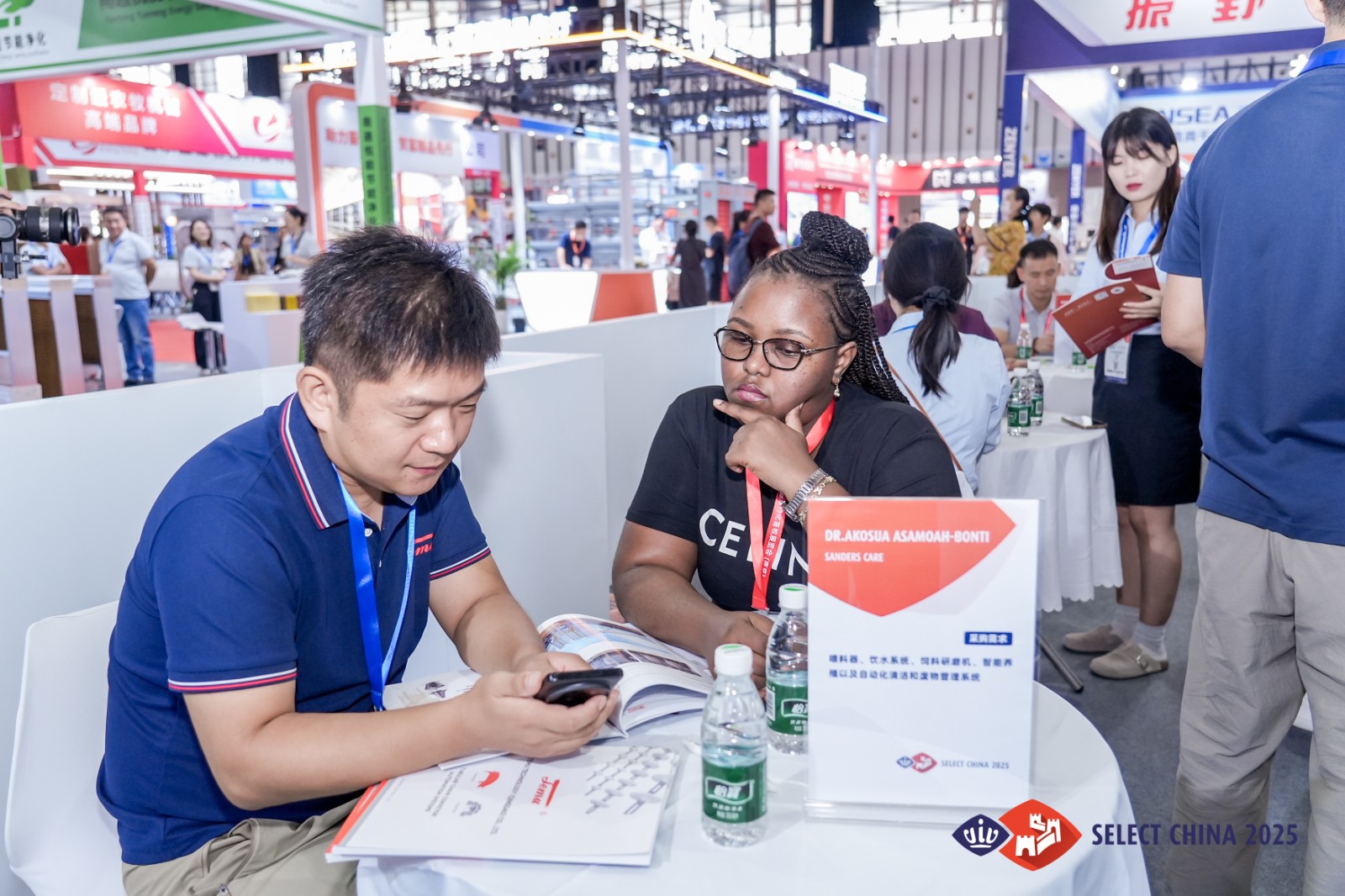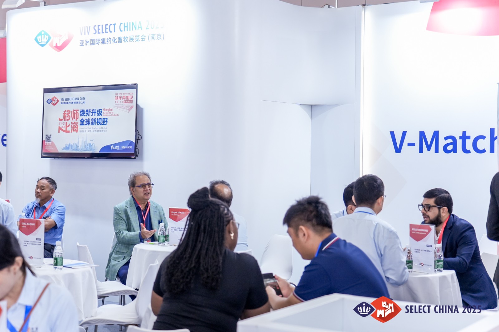 特设V-Match跨国采购商贸对接区接连引爆洽谈热潮,来自全球的专业买家与优质展商精准碰撞,776位展商企业代表与来自西班牙、墨西哥、阿根廷、巴西、俄罗斯、马来西亚、巴基斯坦、尼日利亚、古巴、越南、缅甸、柬埔寨、印度尼西亚、印度 、加纳等67位国际采购商面对面供需交流对接827场精准匹配。V-Match 合计采购金额逾1995万美元。现场展商与买家积极互动,充分彰显出 VIV SELECT CHINA无可替代的国际畜牧商贸聚合实力。